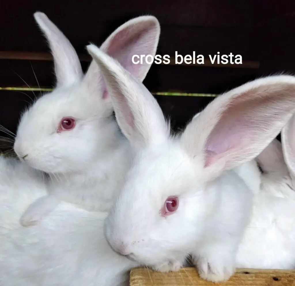 Com pelagem branca e peso adulto entre 4,5 e 5 kg, o Cross Bela Vista foi selecionado rigorosamente para garantir uma ótima conversão alimentar e maior número de desmames por fêmea ao ano. A raça é reconhecida pela excelente produtividade de proteína.